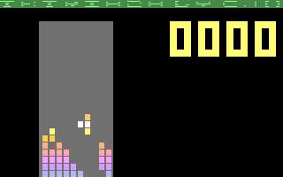 Looks like the continuing problem of developers being more concerned with graphics than gameplay has spread to the 2600. This is one of the prettiest versions of Tetris I've ever seen, with awesome rainbow colors spread all over the field. But the pieces spin uncontrollably whenever you press the button, there's no next piece display, and the game doesn't seem to get any harder as you progress. Aside from those serious problems this is a nice effort, especially for an amateur.