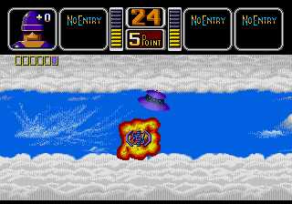 A semi-cute Commando-style game. There are three weapons you can select between at will, with three levels of power for each. The scenery is pretty nice, animation is only average, audio is standard Genesis fare. Decent but not outstanding. Pocky and Rocky fans might consider it.